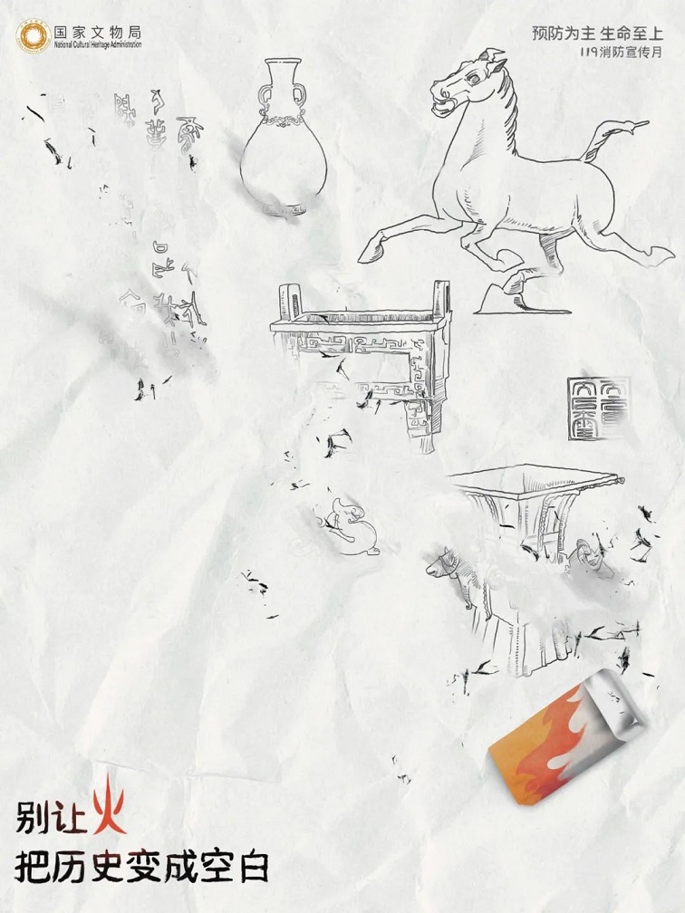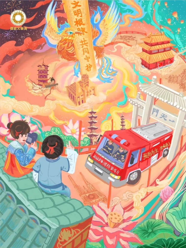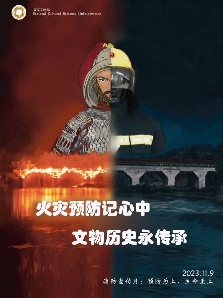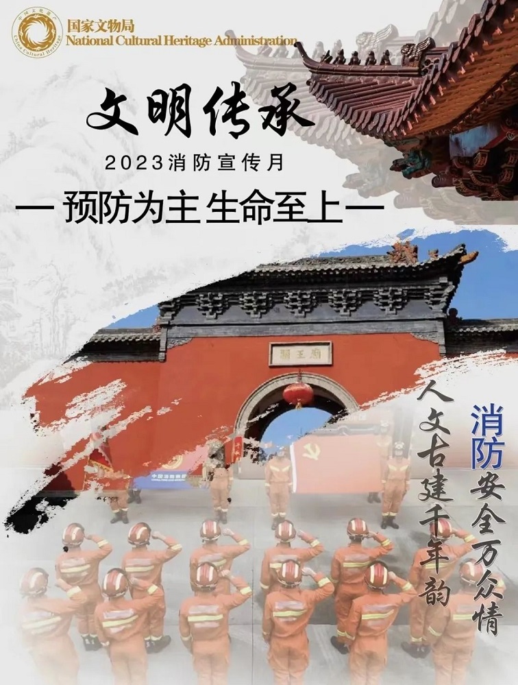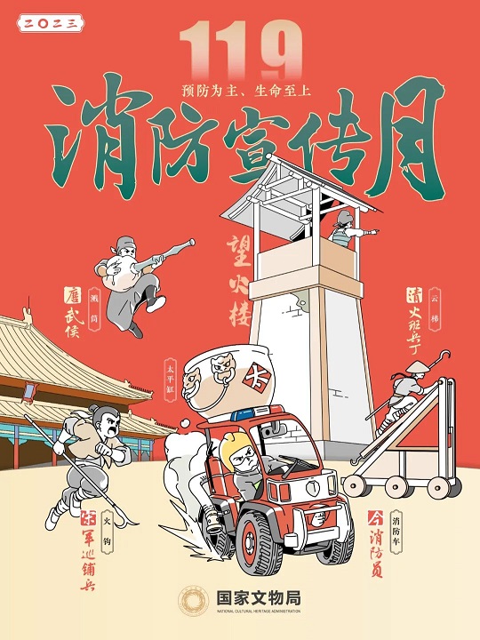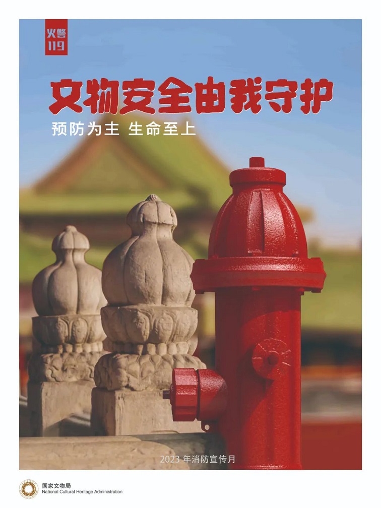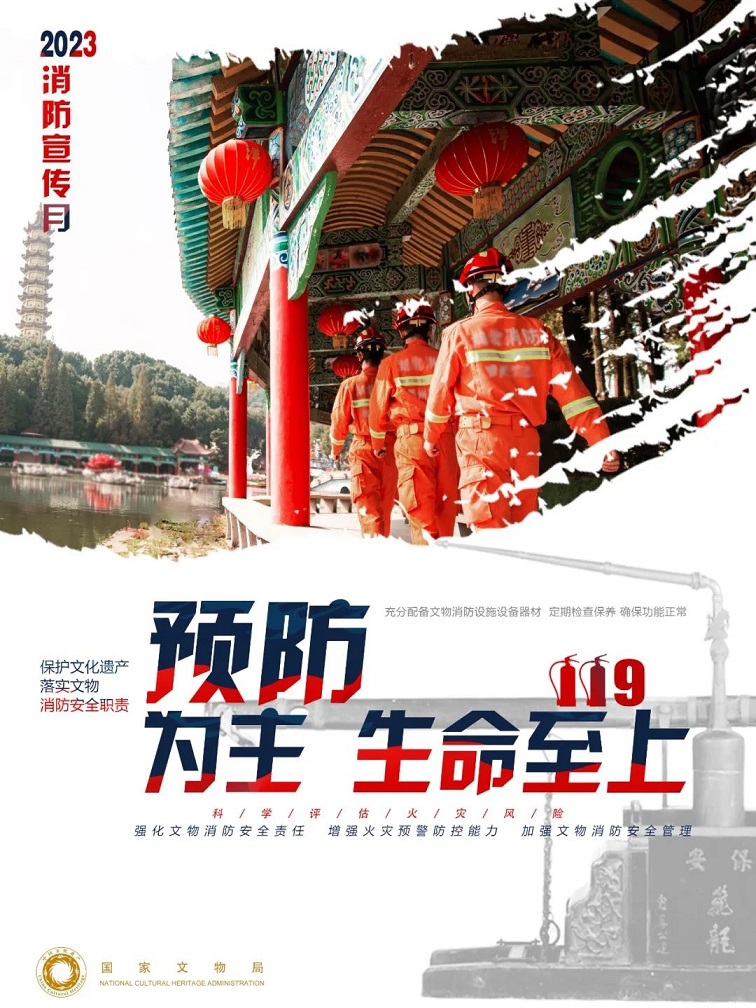 今天是第32个全国消防日,根据国务院安全生产委员会关于开展2023年消防宣传月活动的有关部署,国家文物局组织开展了“2023年消防宣传月文物消防安全主题海报征集活动”。活动自9月份启动以来,得到社会各界积极响应,收到来自文物博物馆单位、消防救援机构、高校、企业和个人的作品113幅,大家围绕今年消防日主题“预防为主、生命至上”,将消防安全与作品文物元素有机结合,突出文物消防安全特点,融入文物安全元素,充分展示文物安全文化。经专家评审推荐,2幅作品评选为年度优秀作品,10幅作品评选为年度入围作品,现将作品公布如下。